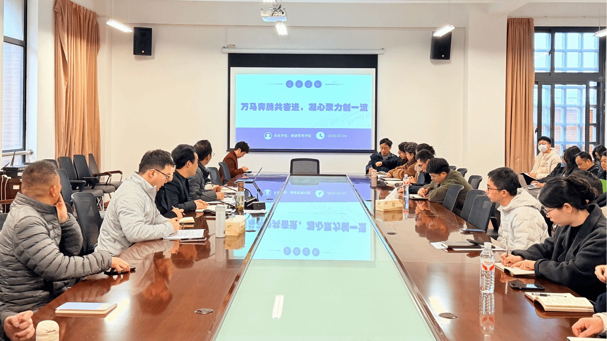 开学首日上午,食品学院、健康管理学院召开新学期首次全体教职工大会,回顾总结2025年工作,明确新学期努力方向、部署重点任务,为学院新学期高质量发展凝心聚力、谋篇布局。学院领导班子、全体教职工参会。